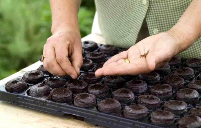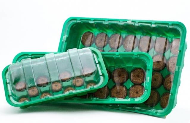 Pak musíte vzít nějakou hlubokou a objemnou nádobu (často se používají plastové boxy zpod koláčů nebo jiných kulinářských výrobků) a do ní vložit rašelinové tablety tak, aby byly malé prohlubně nahoře. Nedávno se na trhu objevily speciální kazety velikosti tablet s podnosy a vhodnými víčky.Takové soupravy ještě usnadňují život a zpočátku vytvářejí ideální skleníkové podmínky pro klíčení semen.