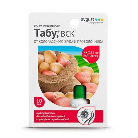 - Tabu šetří nejen z bramboru bramboru Colorado, ale také ze všech škůdců (zejména larev brouka), kteří žijí v půdě. Zpracované hlízy pod spolehlivou ochranou po dobu nejméně jednoho a půl měsíce. Srážení nesnižuje účinek léku.