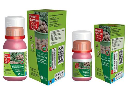 - Prestiž - spolehlivá ochrana přistání. Pro přípravu roztoku na zpracování brambor se 50 ml produktu zředí ve třech litrech vody.