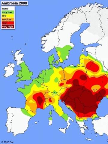Existují stránky, které sledují stav kvetení ambrózie. K dispozici jsou také údaje o koncentraci pylu této rostliny v každém regionu.
