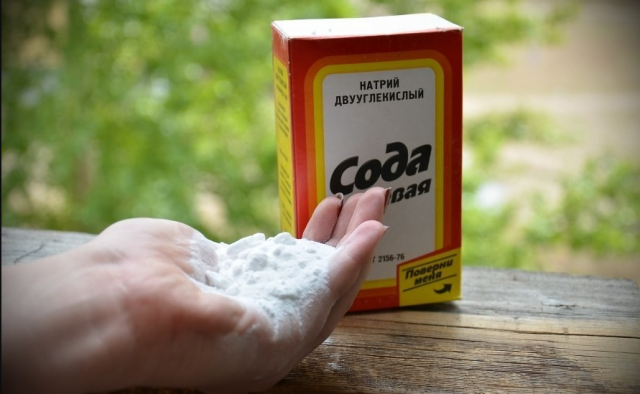 Dalším rozpočtovým lidovým prostředkem pro kontrolu plevelů je použití jedlé sody. Jeho aplikace je velmi jednoduchá. Míchejte sódu bikarbónu s vodou a tímto roztokem zalévejte malou plevel. Stejně jako u soli musí být vzdálenost od plodiny nejméně 300 mm.