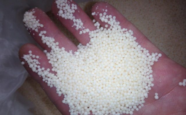 - Můžete udělat silné osvětlení a podívat se blíže na granule: dusičnan amonný může být světle žlutý nebo dokonce narůžovělý. Zároveň zůstává močovina vždy bílá.