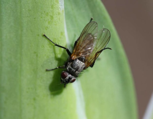 Vzhled duhovkových mušek si můžete všimnout podle skvrn na okrajích okvětních lístků. To je způsobeno skutečností, že hmyz probodne proboscis a živí se mízou rostliny. Kromě toho je na povrchu květů vidět zelený výtok. Boj v tomto bodě spadá do řezání a ničení květin.