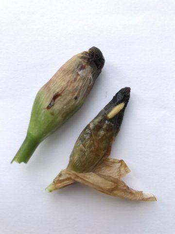 Nejčastěji jsou ovlivněny odrůdy středního a pozdního kvetení. Stopka se zpočátku vyvíjí jako obvykle, ale nerozkvétá.