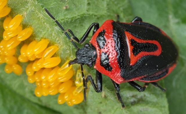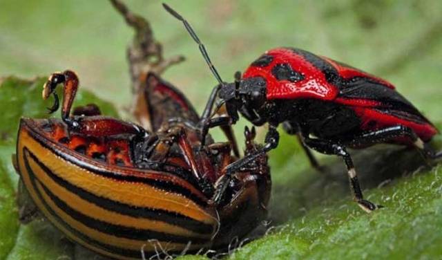 Na fotografii je však jako oběť blízký příbuzný bramborového brouka Colorado, který se od něj liší pouze barvou elytra. Ale perillovi je jedno, kdo tam je.