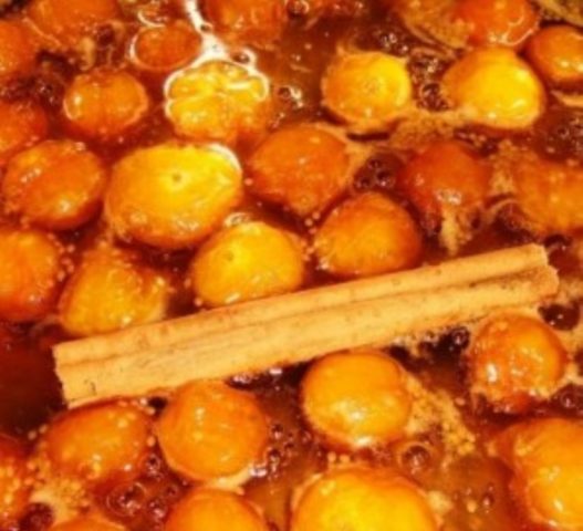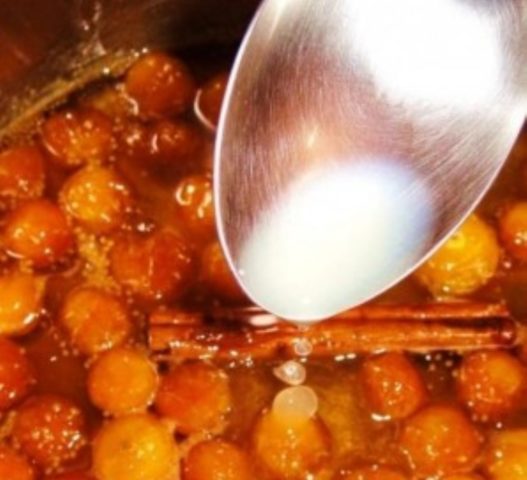 Krok 4... Po vzniku cukrového sirupu se oheň zvýší, přidá se skořice a za stálého míchání se přivede k varu a vaří se 10 minut.