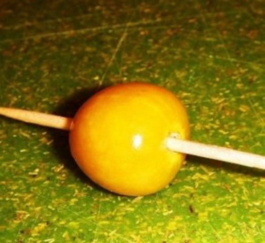 Krok 1. Bobule jsou oloupány z listoví a každá je probodnuta párátkem.