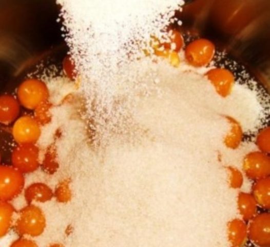 Krok 2. Připravený physalis se přenese do nádoby a pokryje se cukrem.