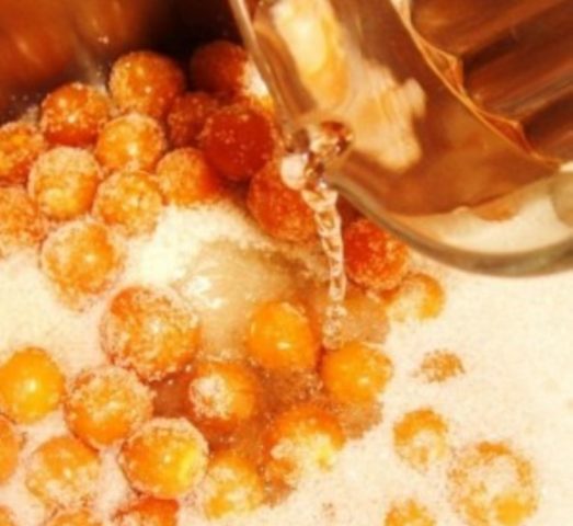 - K cukrovému sirupu se přidá bobule a vaří se několik minut.