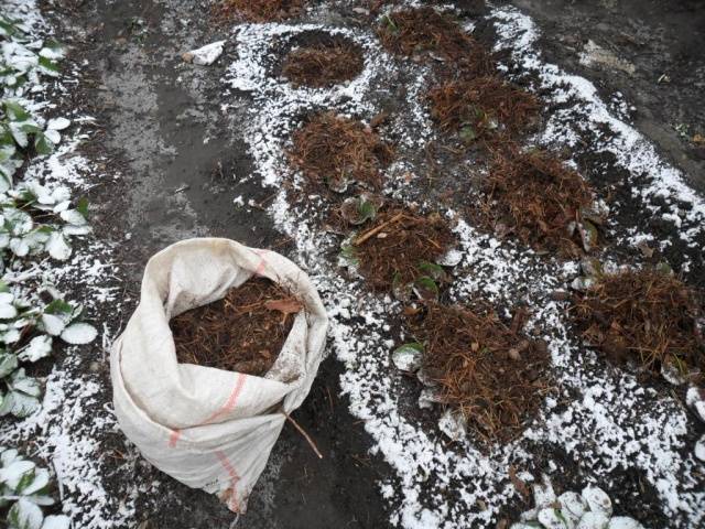 Chcete-li vytvořit pohodlné podmínky pro spící období jahod, musíte zakrýt celou plantáž nebo samostatně každé keře krycím materiálem. Může to být seno, spadané listí nebo jehly. To vám mimo jiné pomůže zastavit růst plevelů na začátku jara.