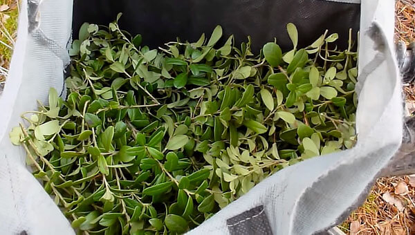 Při shromažďování listů pro vlastní potřebu je nejlepší je pouze sbírat. Keř byste měli držet rukou, abyste nevytáhli celou rostlinu ze země, protože kořenový systém je mělký. Je nemožné provést takové hromadné shromáždění. V tomto případě je lepší střílet výhonky selektivně.