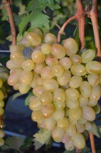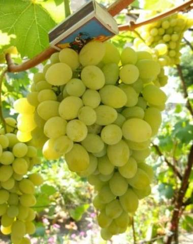 Podmíněně zimní odolné hrozny vydrží mrazy až do -24oZ.Raná mrazuvzdorná odrůda vás po 110 dnech potěší lahodnými bobulemi. Kultura byla vyšlechtěna v procesu křížení Voskovy s Radiant Kishmish. Bobule rostou velké, podlouhlé. Barva ovoce je světle zelená. Na slunci získává pokožka zlatý odstín. Hmotnost bobule je asi 20 g. Kůže je tenká, při žvýkání téměř nepostřehnutelná. Bobule je asi 3 cm dlouhá a 2,5 cm široká.