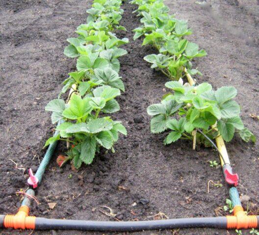 Způsob zalévání jahod Brighton není zásadní, ale je lepší, aby kapky vody nespadaly na listy, květy a plody
