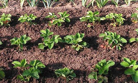 Země kolem keřů musí být uvolněna, dávejte pozor, abyste nepoškodili kořeny. Pak můžete mezi řádky rozetřít kuřecí trus, kravský trus nebo humus. Doporučuje se hnojivo přikrýt vrstvou zeminy. Takový vrchní obvaz bude navíc působit jako mulčování a organické složky budou postupně absorbovány kořeny jahod ve správném množství.