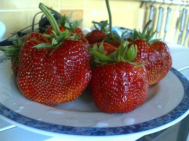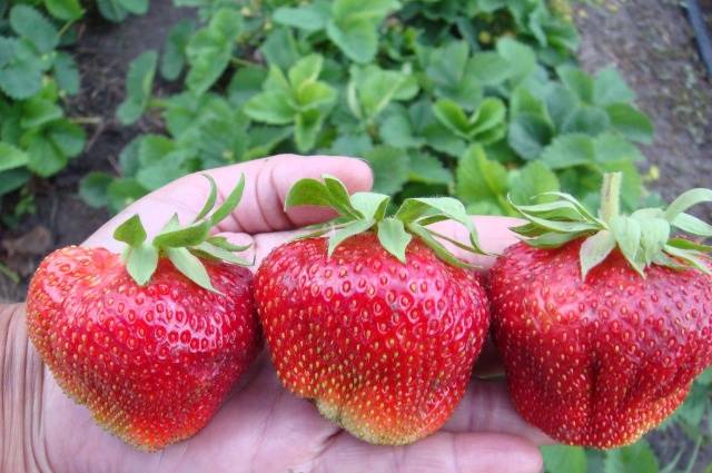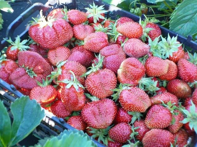 Plody jsou kuželovitého tvaru, pevné dužiny, sladké chuti s jahodovou vůní. Výnos každé rostliny dosahuje 2 kg.