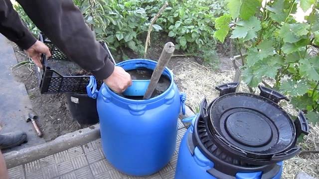 - první krmení se provádí okamžitě po odstranění zimního úkrytu; každé pouzdro bude vyžadovat 20 g superfosfátu, 10 g dusičnanu amonného a 5 g draselné soli, to vše se rozpustí v 10 litrech vody;