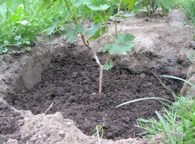 - Vykopeme otvor, jehož průměr by měl odpovídat průměru kořenového systému hroznů Akademik,