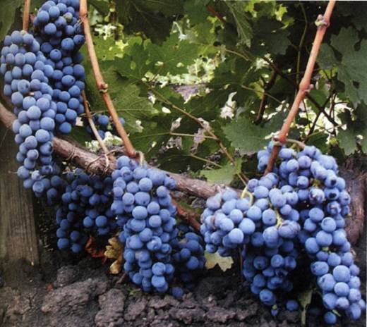 Je třeba poznamenat, že tato konkrétní odrůda se nazývá předek hroznů Cabernet Sauvignon. Ve srovnání s „dítětem“ je rodič méně produktivní, ale dozrává dříve. Je to Fran - odrůda hroznů, která se doporučuje pěstovat v zóně rizikového zemědělství. Trsy střední hustoty, s tmavě modrými bobulemi, pokryté hustým květem.