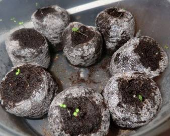 Předběžně jsou tablety umístěny na rovný podnos a nality teplou vodou - měly by nabobtnat a zvětšit se. Poté lze vylíhnutá a stratifikovaná semena zasadit jako obvykle (výše popsaná metoda).