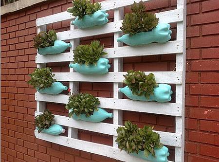 Existuje další zajímavá možnost pro vytvoření vertikální struktury z plastových lahví pro pěstování jahod. Kromě lahví pro něj určitě budete potřebovat podporu, jejíž roli může hrát dřevěný štít nebo kovový plot.
