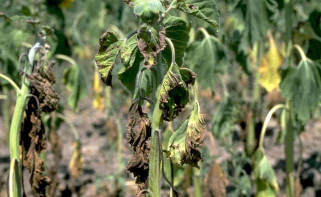 - Vertikilární vadnutí. Způsobeno půdními houbami. Ovlivněná rostlina začíná vysychat a odumírat shora kvůli vniknutí houby kořenovým systémem.