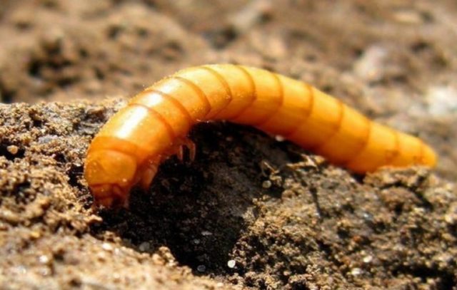 - Drátěný červ. Larva klikatého brouka žijící v zemi. Drátovník vypadá jako tvrdá bílá housenka s hnědou hlavou. Pohybující se v půdě, hmyz žere kořeny rostlin.