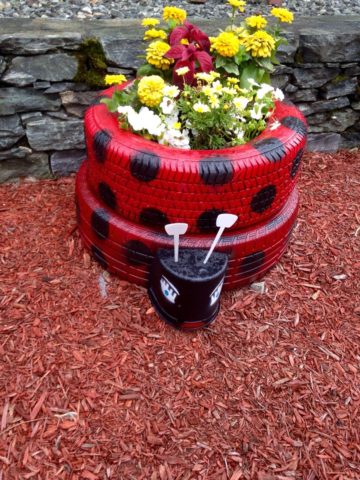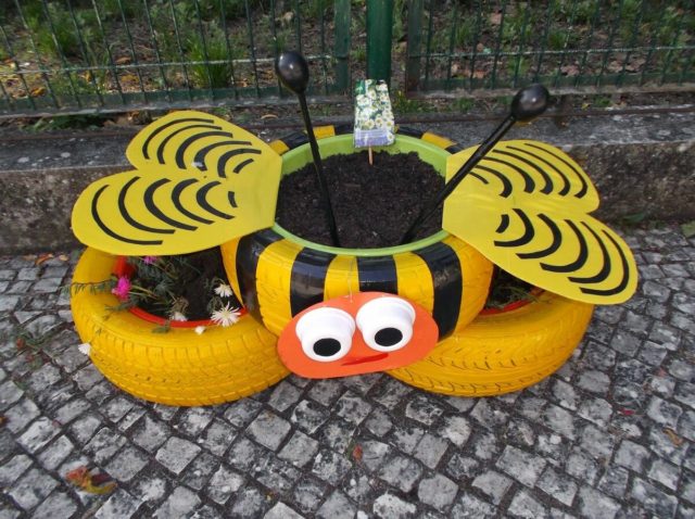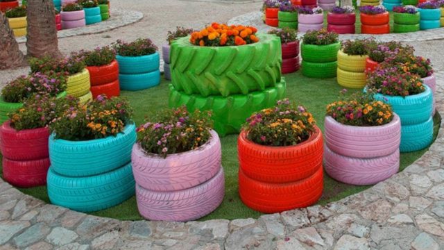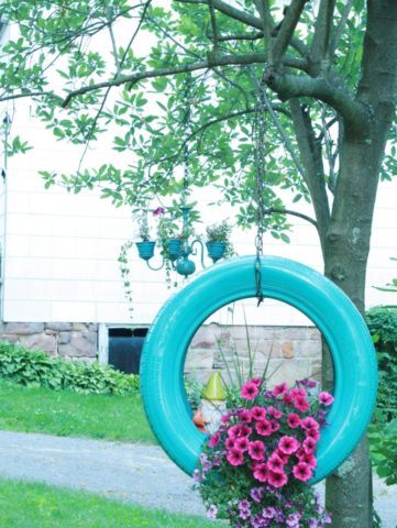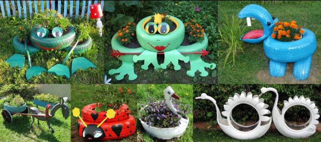 Standardní použití pneumatik již ustoupilo do pozadí. Dnes se každý snaží najít jedinečnou možnost designu květinového záhonu vyrobeného z koleček, přičemž věnuje zvláštní pozornost jeho malování a vytváření nestandardní květinové zahrady na svém dvoře. Zástupci zvířecího světa se stanou originální výzdobou květinové zahrady: želva z pneumatik, labuť, ježek, pavouk, drak nebo kdokoli jiný, let představivosti není omezen.