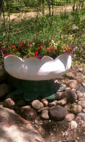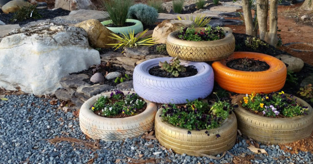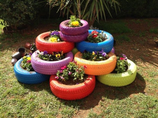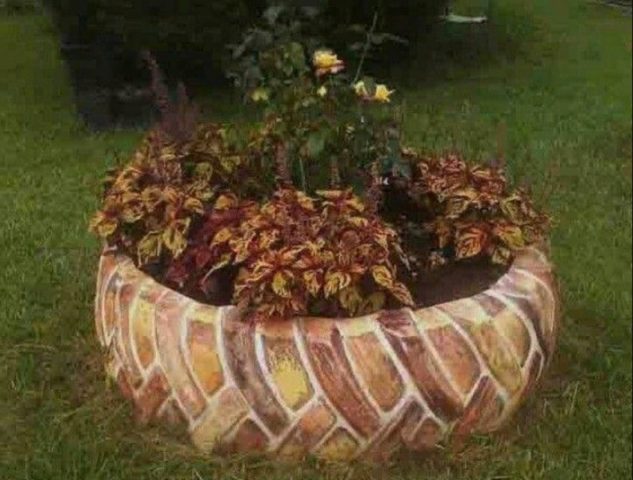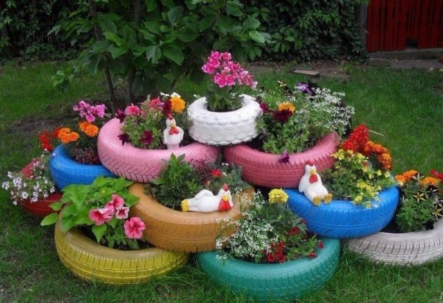 - je nutné vyzdobit květinové záhony pneumatik tak, aby vzor na květináčích automobilových pneumatik svým jasem neutopil krásu živých rostlin.