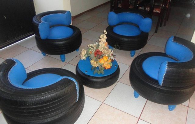 Spolu se schopností vyzdobit květinový záhon květinami vypadají řemesla vyrobená z kol originálně. Nekonečnost nápadů vám umožňuje vytvářet z pneumatik automobilů dokonce i designový nábytek: zahradní stoly, poufy, křesla. Používají se také k výrobě krmítek pro ptáky, dětských houpacích křesel, houpaček, pískovišť, autíček a motocyklů pro dětská hřiště.