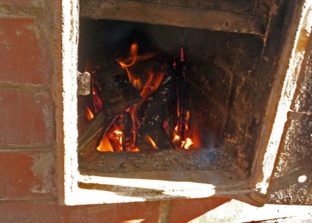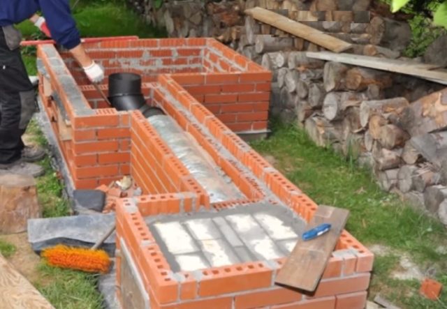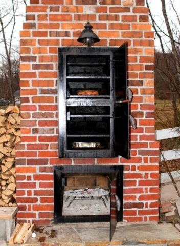 Po vybudování suterénu udírny se na hliněný roztok položí další řady cihel. Je čas vybavit topeniště. V udírně z uzených nebo studených cihel se vždy nachází nad popelníkem. Pec je položena ze šamotu nebo žáruvzdorných cihel na žáruvzdorné hlíně. Můžete jít jinou cestou. Spalovací komora udírny je svařena z plechu a jednoduše zapuštěna do zdiva.