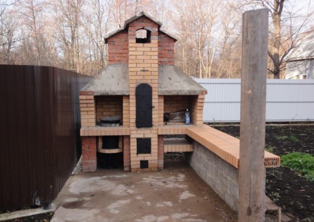 Udírna ve formě pece je vybavena ohništěm, deskou a dalšími pracovními prostory.
