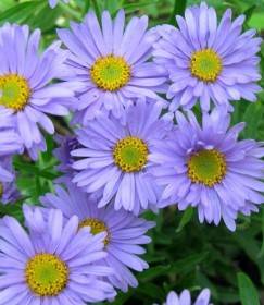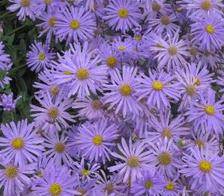 Thomson je nízko rostoucí astra, výška asi 45 cm, dlouhotrvající kvetení od července do prvního mrazu. Liší se v modrém květenství a šedých listech.