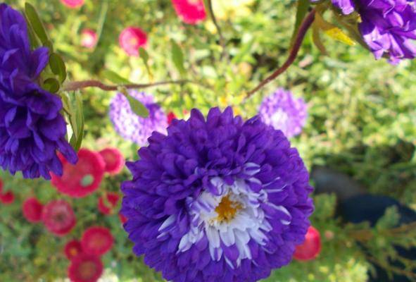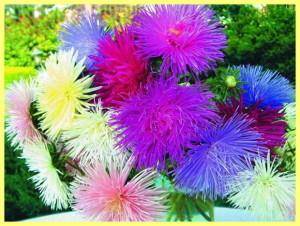 Ve tvaru květiny jsou roční odrůdy asterů (foto níže):