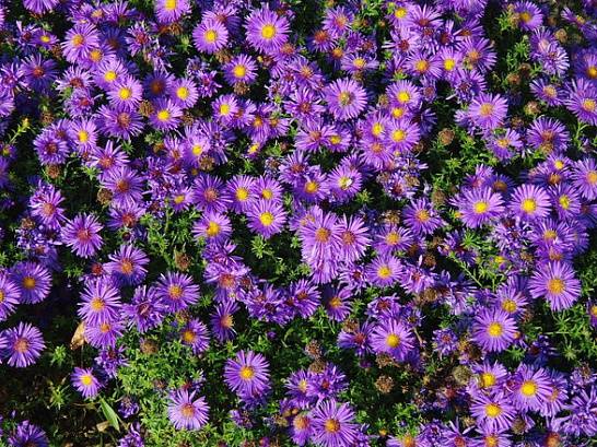 Vytrvalé astry přicházejí v různých výškách a barvách. Vysoké rostliny jsou zasazeny do samostatných květinových záhonů a trpasličí odrůdy vypadají velmi dobře ve skalkách a alpských kopcích jako živé ploty.
