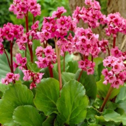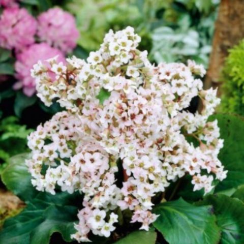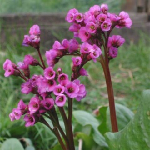 - Badan Schmidt... Trvalka se získává křížením řasnatých a silnolistých druhů, proto je nemožné se s nimi setkat v přírodních podmínkách. Rostlina je široce používána v krajinářském designu v evropských zemích. Keř má silný růst. Tvoří oválné listy tmavě zeleného nasyceného odstínu, jejichž délka dosahuje 25 cm a šířka je 15 cm. Desky Schmidtova badanu se zubatým okrajem mají dlouhé řapíky. Květy jsou jasně růžové barvy, umístěné na krátkých květenstvích, které zpočátku klesají a poté získávají svislou nebo vodorovnou polohu. Příchodem chladného počasí se odstín listů zčervená s hnědým odstínem.