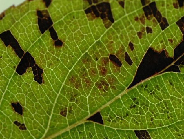 Po napadení hlísticemi se na listech objevují tmavé skvrny.