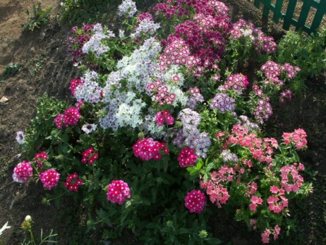 Při výběru sousedů pro kulturu by zahradníci měli věnovat pozornost skutečnosti, že šedivý pelyněk a kostřava budou na pozadí růžových floxů krásně vynikat.