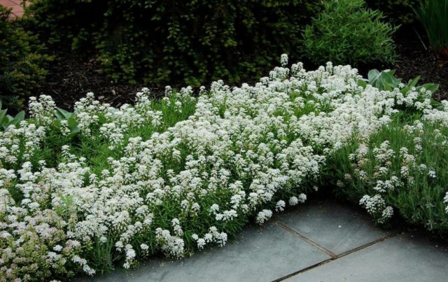 Iberis umbellate se často vysazuje dražší samostatně nebo na pozadí vysokých rostlin, keřů, stromů