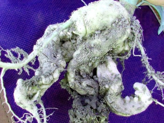 Kořeny zasažené kýlem špatně absorbují vlhkost a prvky nezbytné pro rostlinu