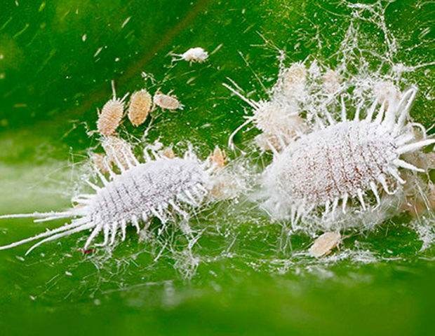 Mealybug se živí rostlinnou mízou, inhibuje jejich vývoj a imunitu