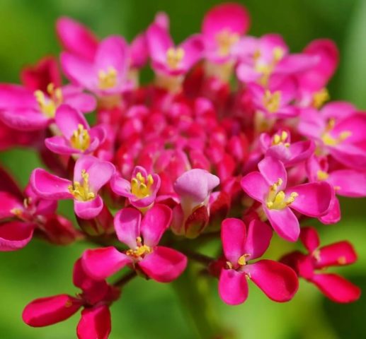 - květy jsou malé, skládají se ze 4 okvětních lístků, otevřených současně, hustě umístěných;