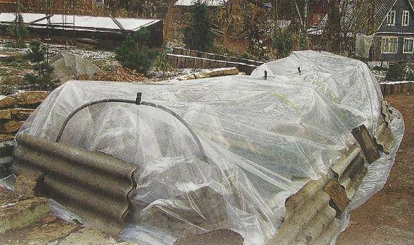 - Když přijdou mrazy, měli byste oblouky zakrýt střešní lepenkou a ta zase polyetylenem. Takový přístřešek nedovolí hromadit vlhkost, což může způsobit tlumení. Okraje střešního materiálu lze mírně zvednout, aby umožnil čerstvému vzduchu proudit ke květinám.