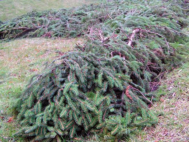 Poté můžete začít stavět samotný přístřešek. Za tímto účelem rozložte nahoře větve borovice nebo smrku. Nevyplňujte mezery suchým listím, trávou nebo pilinami. Jakmile se do struktury dostane vlhkost, tyto materiály se rychle začnou brousit. Růže lze zakrýt pouze za suchého slunečného počasí.