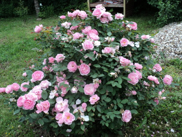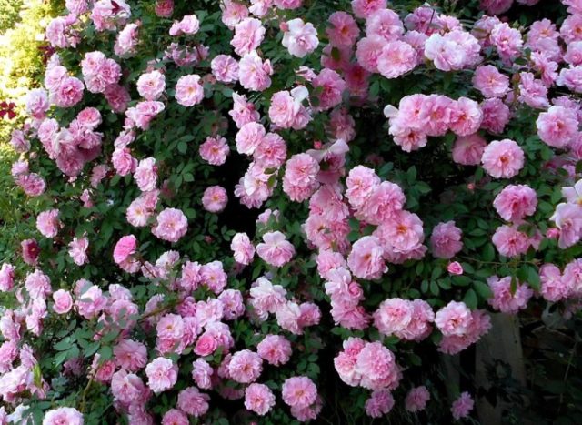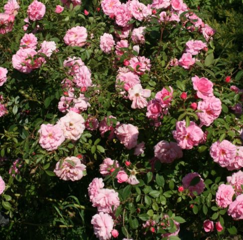 Rostlina kvete velmi hojně, nepřetržitě. Na stoncích se tvoří květenství 10-15 pupenů. Květy jsou hustě dvojité, zaoblené polokoule, skládají se z 50-60 okvětních lístků. Barva je růžová. Vůně je příjemná, silně výrazná i na dálku.