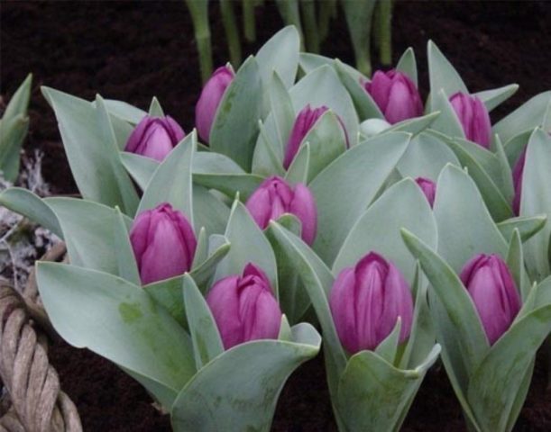 Kvetoucí tulipán Blue Baby je okouzlující pohled, který ohromuje bohatou záři fialových pupenů