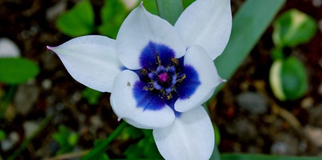 Unikátní odrůda Alba Coerulea Oculata je z italštiny přeložena jako „modrooké dítě“. Střední vnitřní část okvětních lístků je namalována tmavě modrou barvou, kterou dále ohraničuje fialový pestík a šest modro-modrých tyčinek se žlutým pylem. Bílá barva hlavní části okvětních lístků evokuje vzpomínky na sněhově bílé vrcholky hor - rodiště klasických trpasličích tulipánů.
