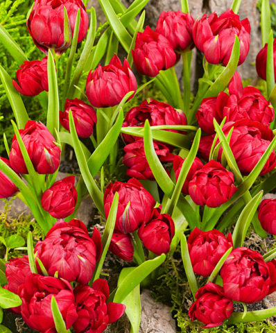 Trpasličí dvojité tulipány světlé šarlatové barvy s romantickým názvem Tet a tet jsou dokonalým dárkem pro první vyznání lásky. Křehké okvětní lístky ve tvaru „polibků“, jako by byly vyrobeny z nejjemnějšího červeného sametu, vás zvou k dotyku a vychutnání si nesrovnatelné vůně jara, čistoty a svěžesti.