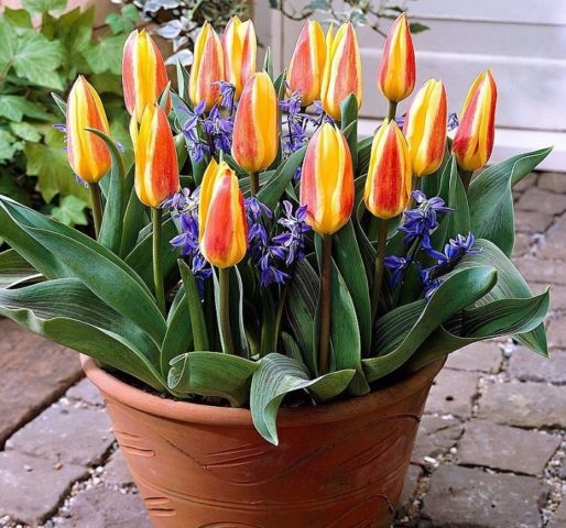 V postelích a v samostatných nádobách vypadají trpasličí odrůdy tulipánů skutečné v kombinaci s jinými petrklíči