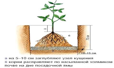 Místo přistání je obvykle připraveno předem, nejlépe několik týdnů předem. Okamžitě se musíte postarat o stabilní podpěry, které jsou vykopány do země před výsadbou. Při výsadbě musí být kořeny plamének narovnány a postupně pokryty zemí. Je obvyklé prohloubit límec kořene od 3 do 10 cm.Při výsadbě v severních oblastech ale buďte opatrní při prohlubování, je lepší hojně zakrýt místo výsadby silnou vrstvou (až 10-15 cm) organických materiálů.