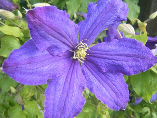 Jednotlivé květy jsou velké, ploché, do průměru 10-12 cm. Stejně jako všechny plamének jsou i sepaly, které přebírají roli okvětních lístků, nejzdobnější částí rostliny. Tvar okvětních lístků, jejichž počet je obvykle 6 kusů, je oválný podlouhlý, směřující k vrcholu, velký 5 až 7 cm, široký 1,5-2,5 cm, okraj je mírně zvlněný. Ze středu se okvětní lístky hladce ohýbají a vytvářejí půvabný, mírně konvexní oblouk. Uprostřed jsou výrazné 3 žíly.